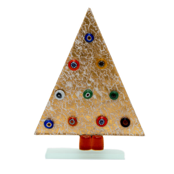 Christmas tree handmade with fusion glass technique. The colored galss contains glass leaf and murrine millefiori. There are 4 sizes available.