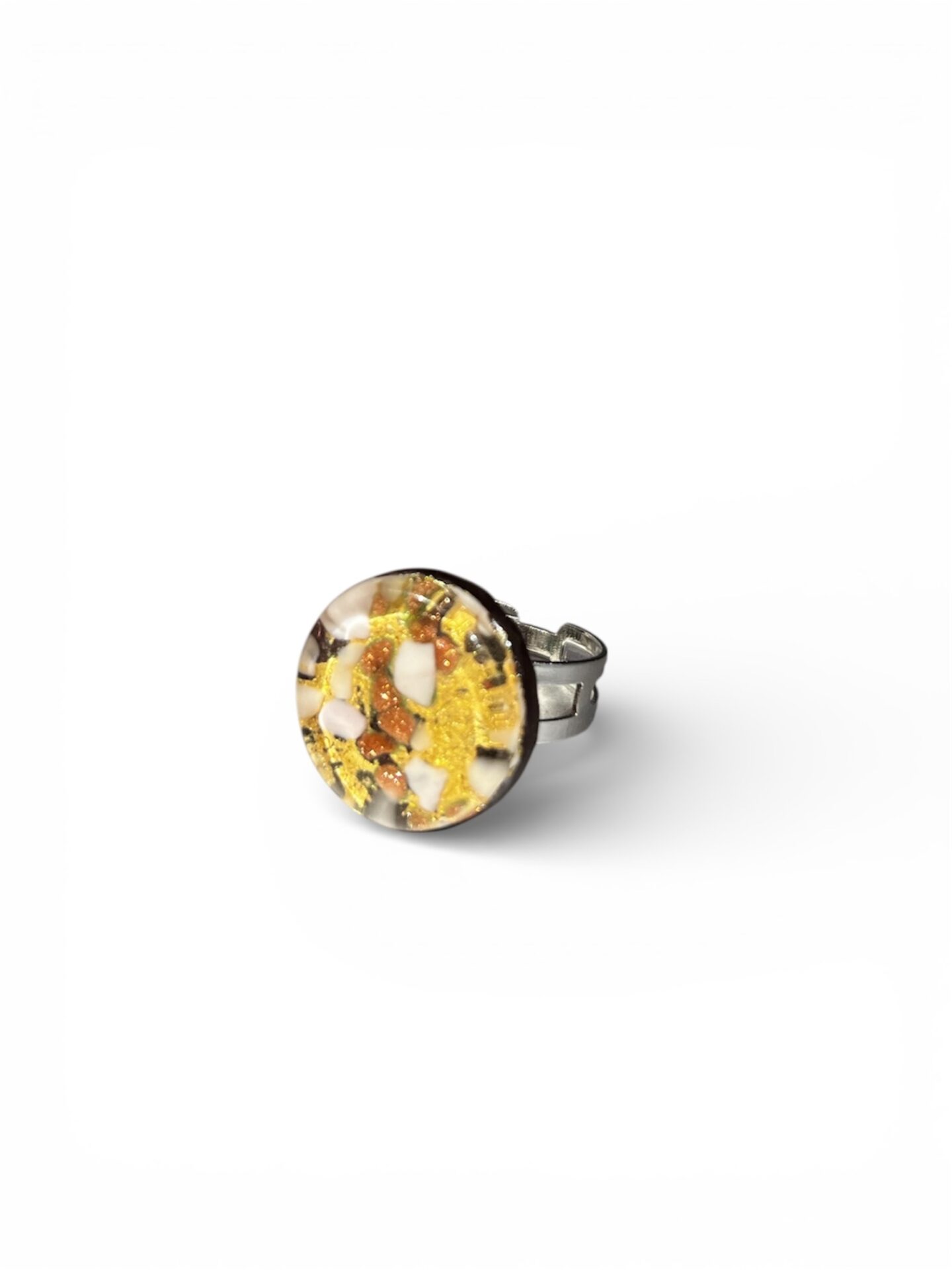 Murano glass ring, crafted using the glass fusion technique. The piece is adjustable and designed with a flexible structure that can adapt to any size.