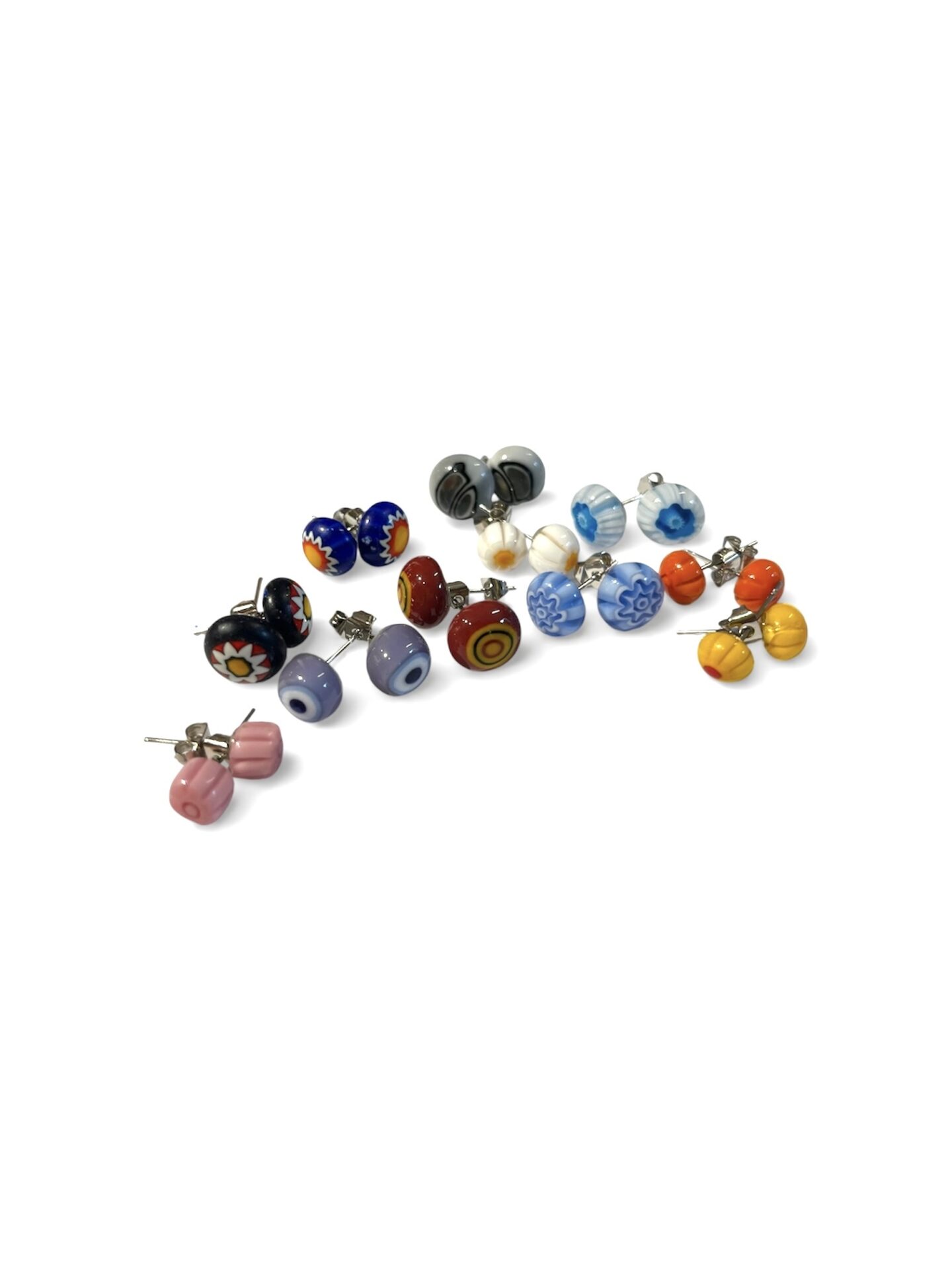 Orecchini a bottone, realizzati con murrine di Vetro di Murano